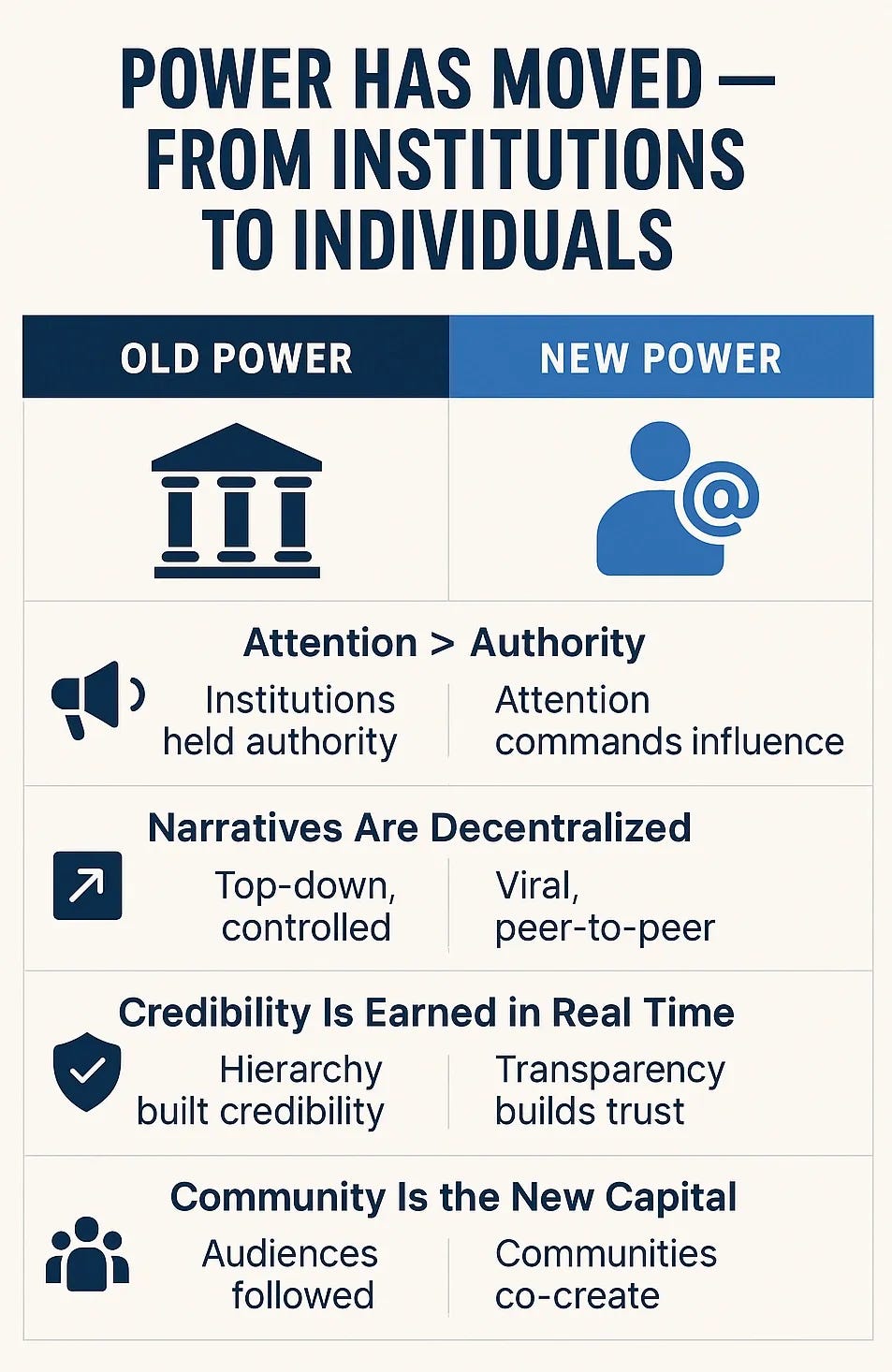 Many folks are starting to notice that power is shifting from institutions to individuals.