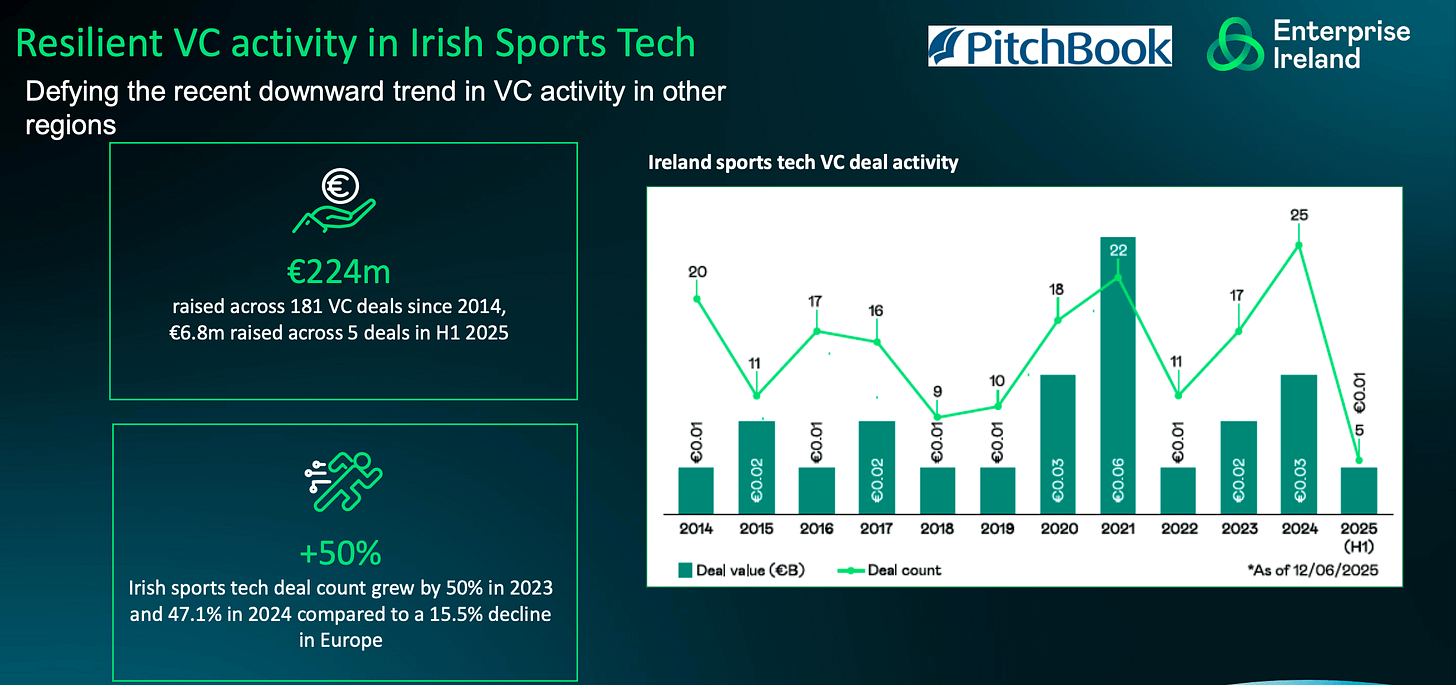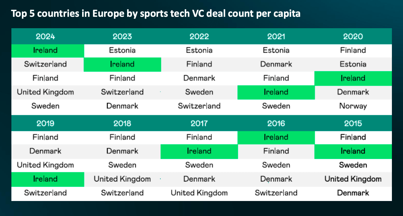 In 2024, Ireland represented nearly 10% of all European sports tech deals, despite having less than 1% of Europe’s population.