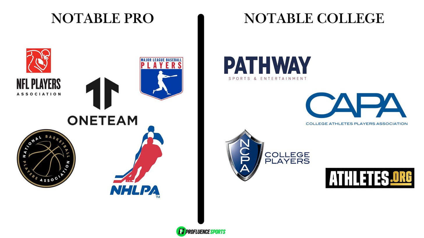 Football- and basketball-focused organizations that could consolidate into formal bargaining entities if legal recognition shifts.