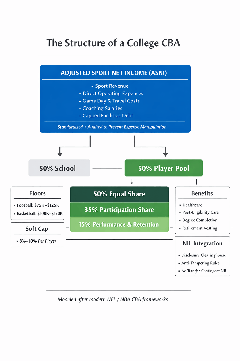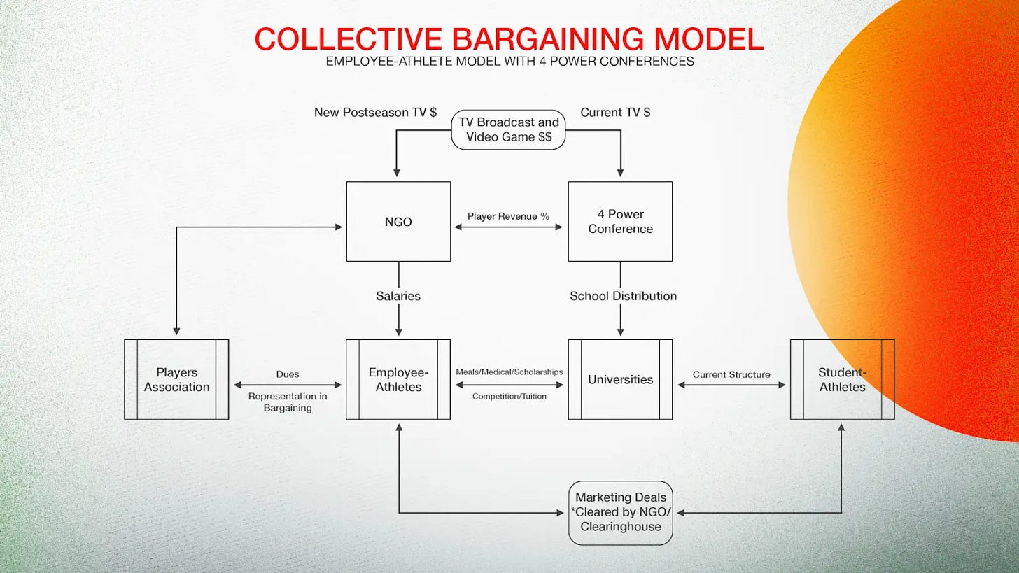 Has released a draft college CBA framework and engaged thousands of athletes. Most explicit attempt so far at building a structured bargaining model.