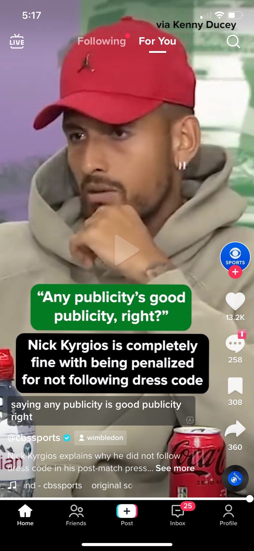 And what’s interesting, is that about 50% of the tennis community says Kyrgios is bad for the game and the other 50% say he’s good for…