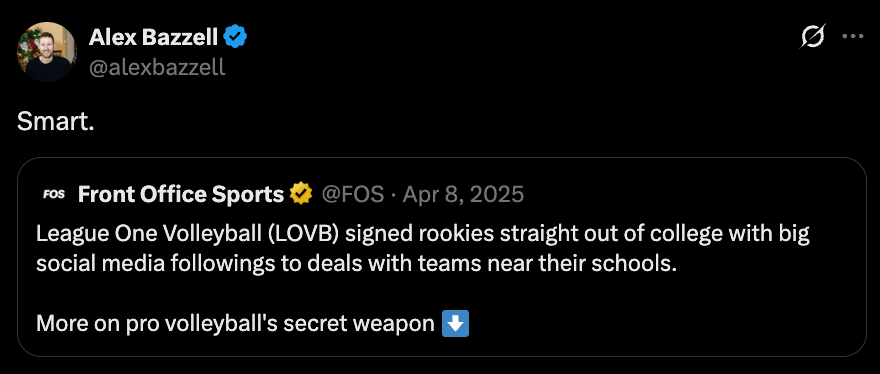 That’s why leagues like LOVB, a new professional women’s volleyball league, are prioritizing athletes with large social followings over purely technical talent.